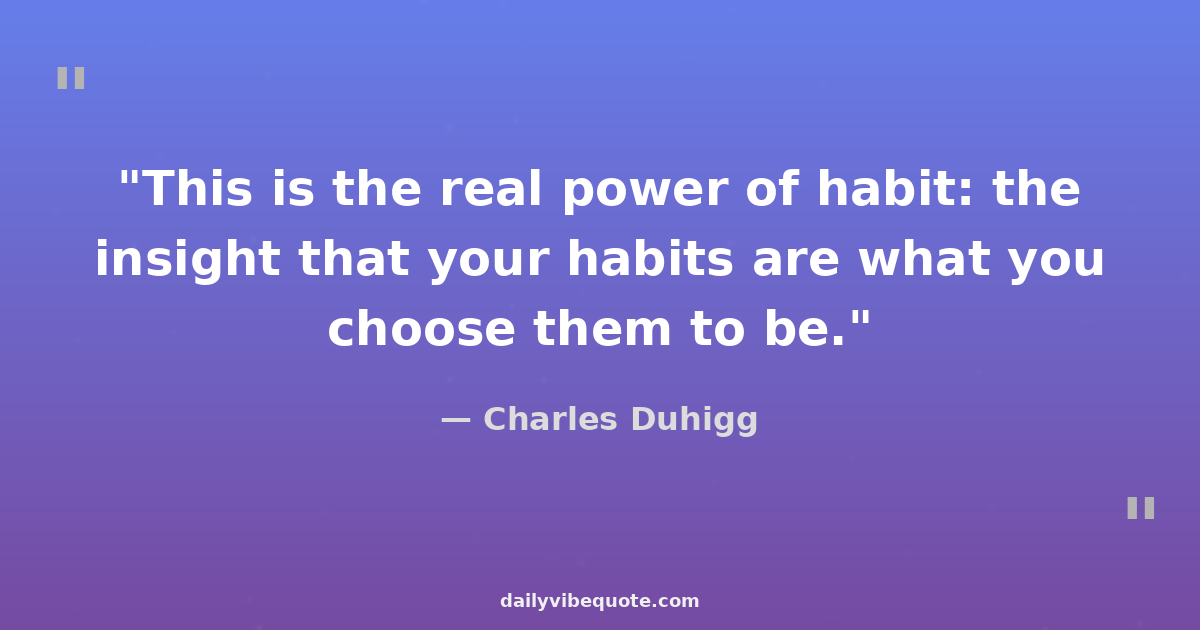 "This is the real power of habit: the insight that your habits are what you choose them to be."