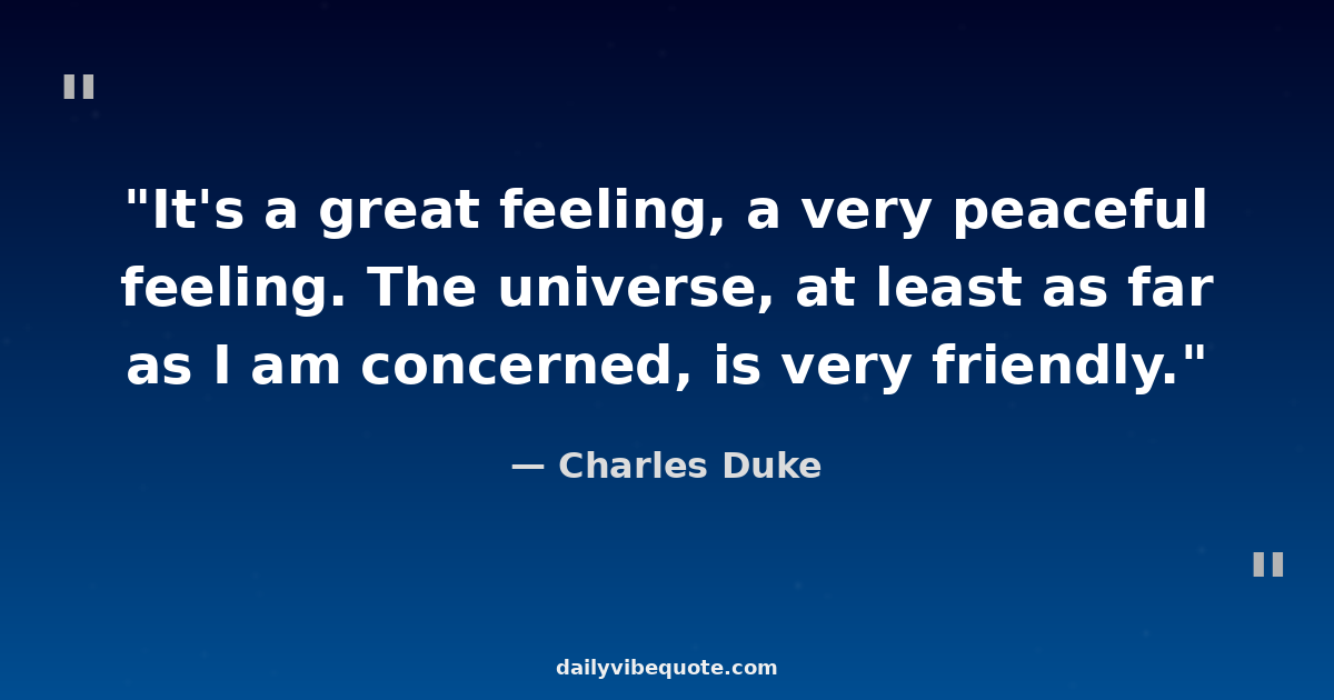 "It's a great feeling, a very peaceful feeling. The universe, at least as far as I am concerned, is very friendly."