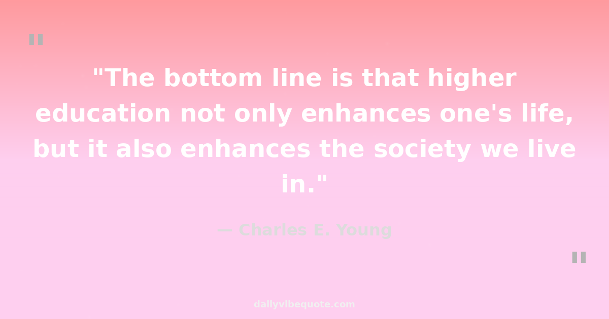 "The bottom line is that higher education not only enhances one's life, but it also enhances the society we live in."