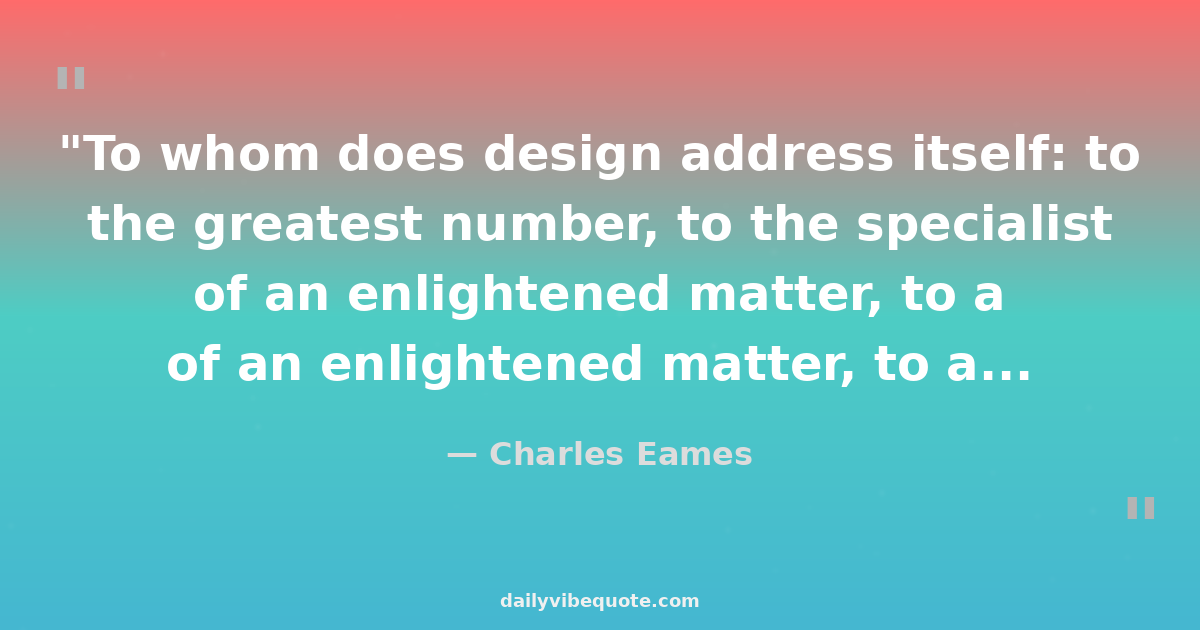 "To whom does design address itself: to the greatest number, to the specialist of an enlightened matter, to a privileged social class? Design addresses itself to the need."