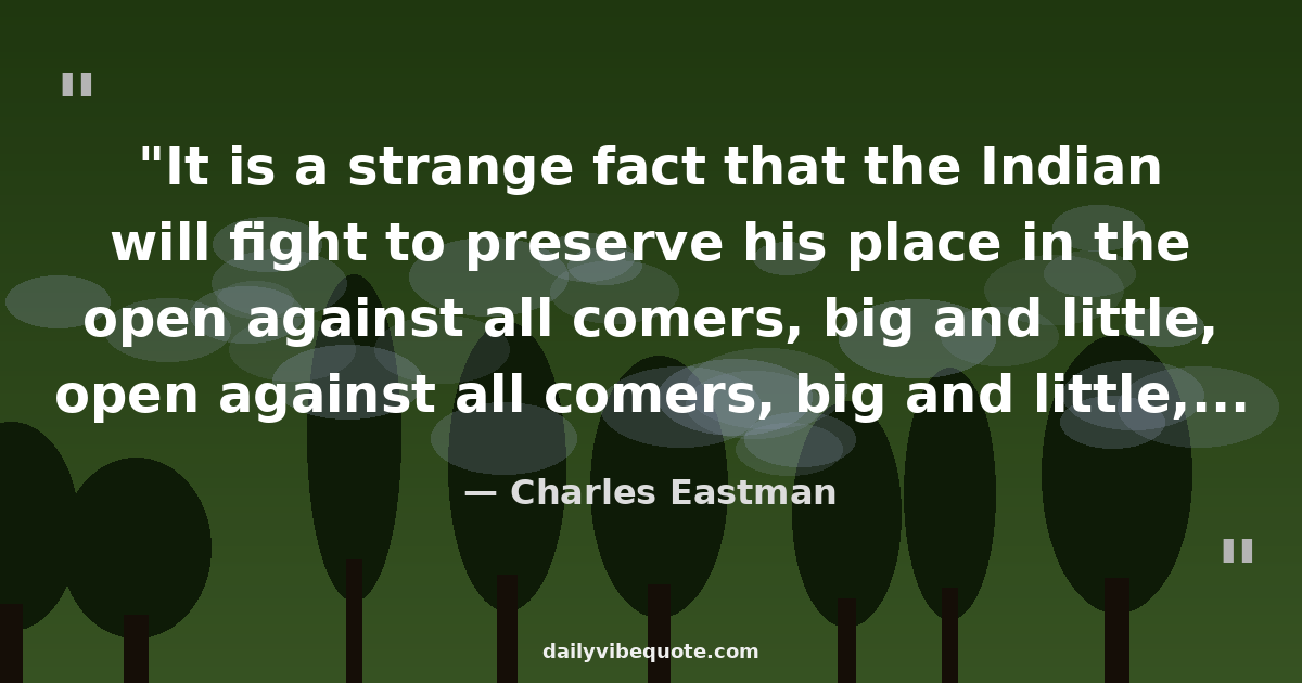 "It is a strange fact that the Indian will fight to preserve his place in the open against all comers, big and little, unless some stronger inducement turns him from his purpose; while the white man, laying claim to the country on the ground of 'discovery,' demands all, giving nothing."