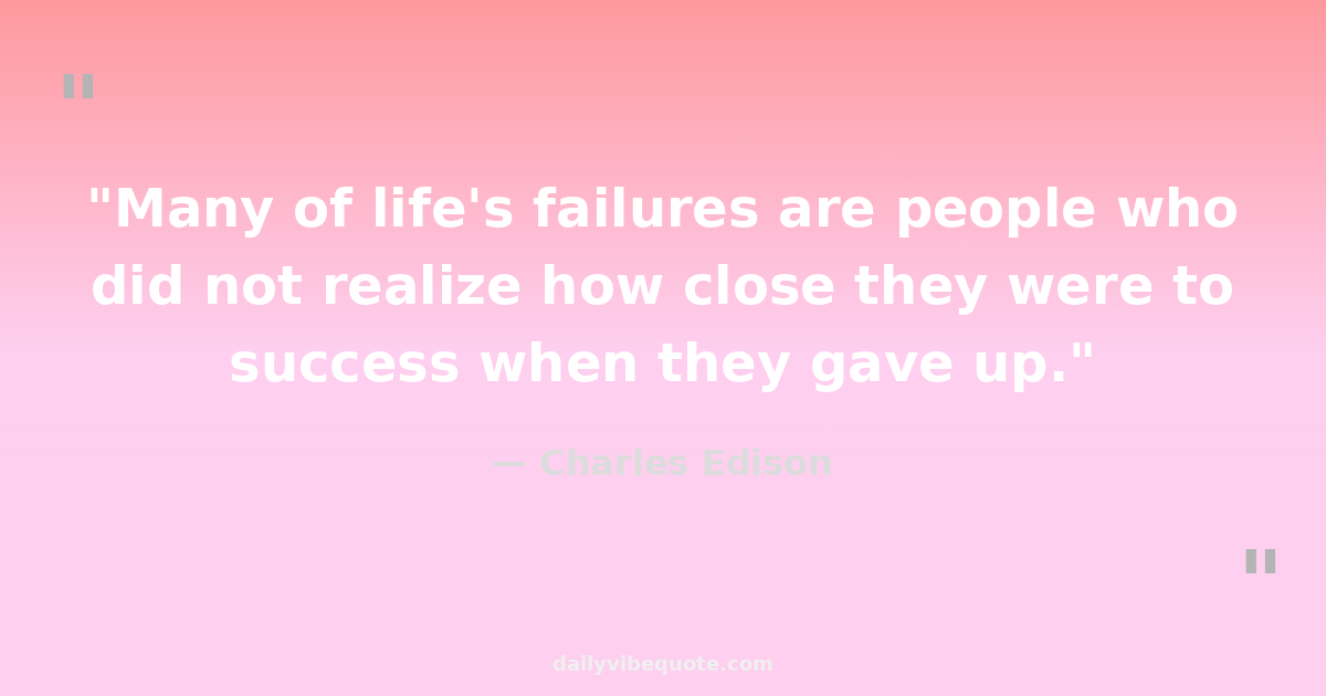 "Many of life's failures are people who did not realize how close they were to success when they gave up."