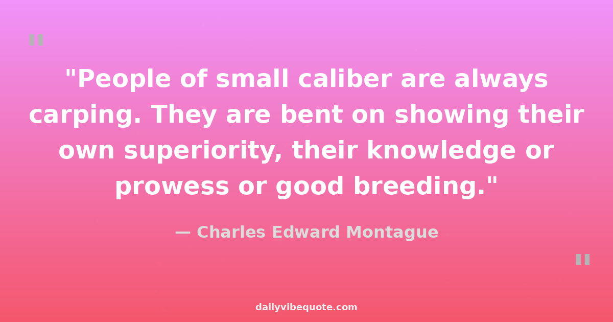 "People of small caliber are always carping. They are bent on showing their own superiority, their knowledge or prowess or good breeding."