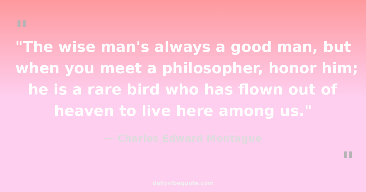 "The wise man's always a good man, but when you meet a philosopher, honor him; he is a rare bird who has flown out of heaven to live here among us."