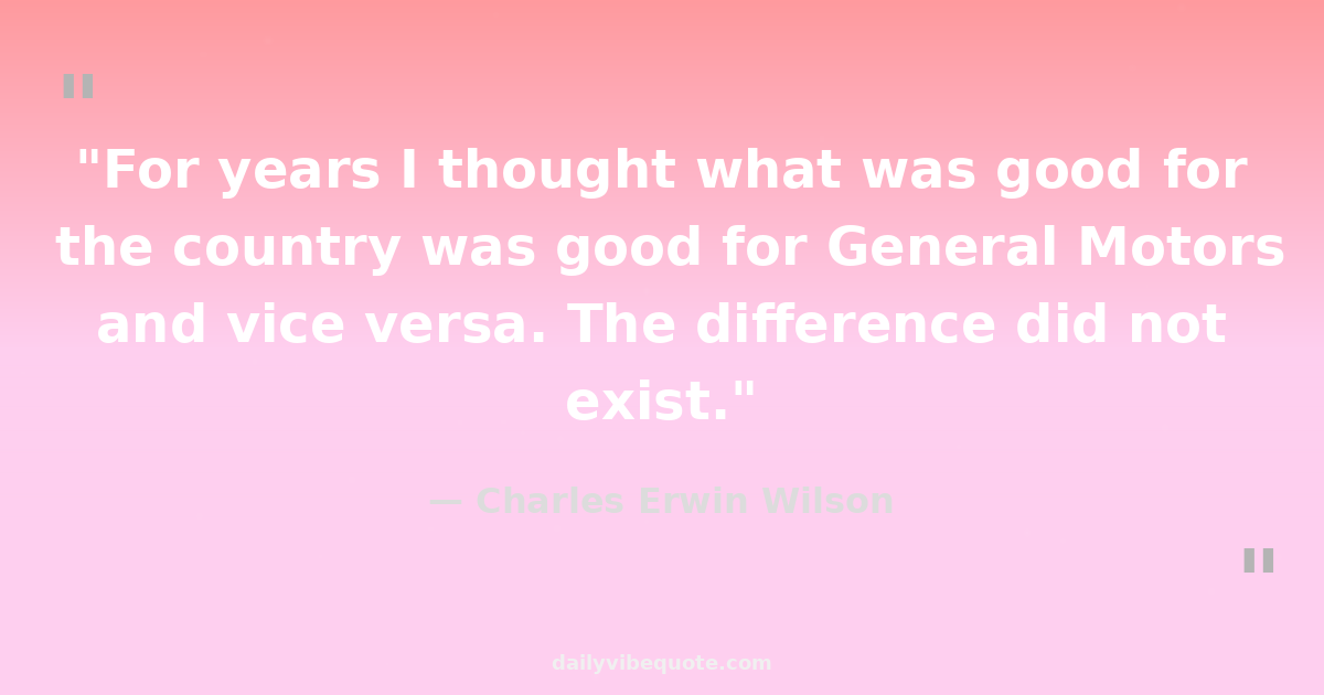 "For years I thought what was good for the country was good for General Motors and vice versa. The difference did not exist."