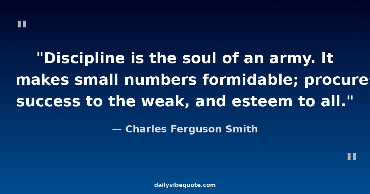 "Discipline is the soul of an army. It makes small numbers formidable; procures success to the weak, and esteem to all."