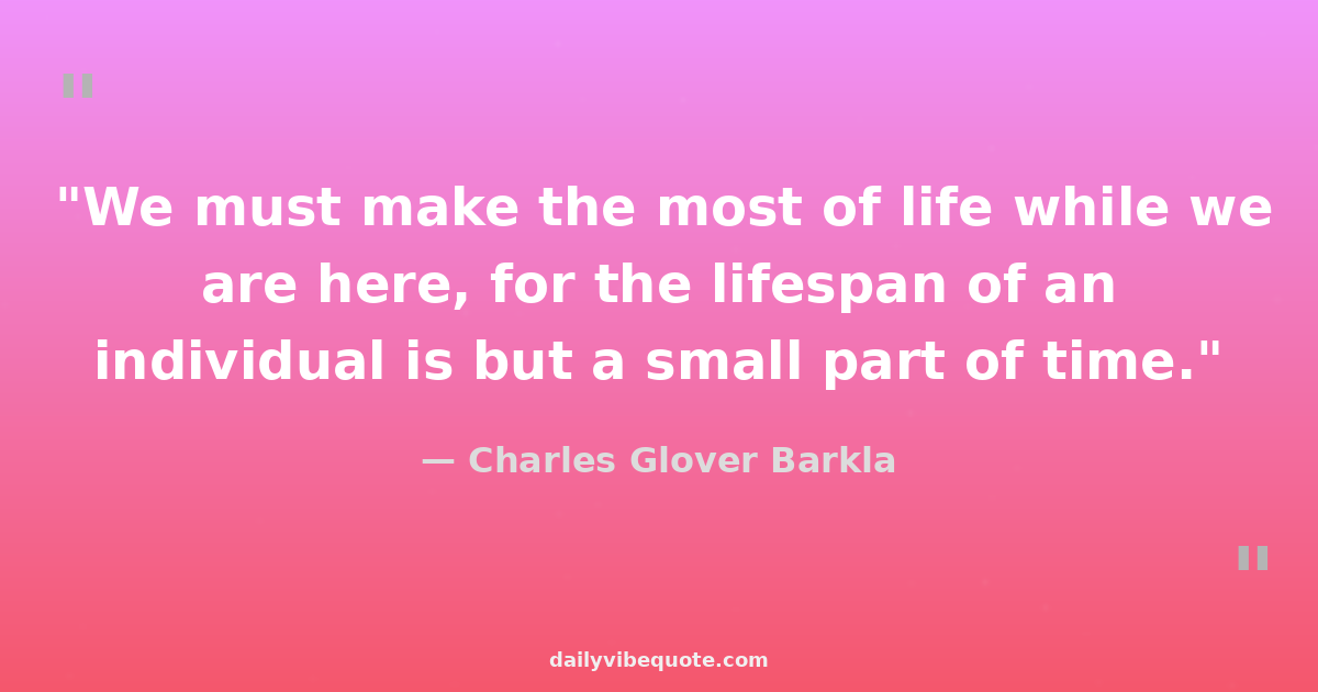 "We must make the most of life while we are here, for the lifespan of an individual is but a small part of time."