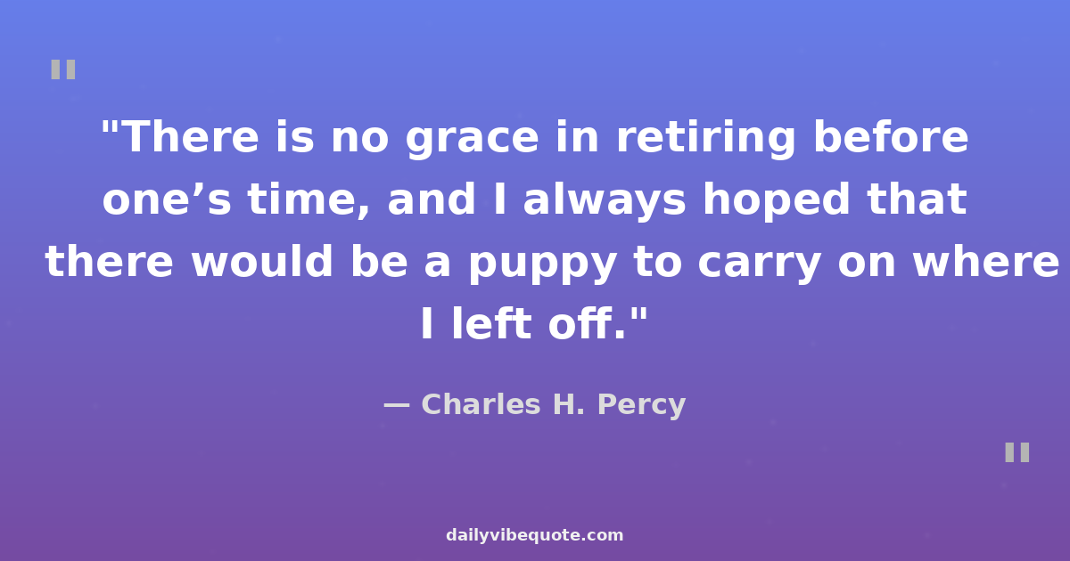 "There is no grace in retiring before one’s time, and I always hoped that there would be a puppy to carry on where I left off."