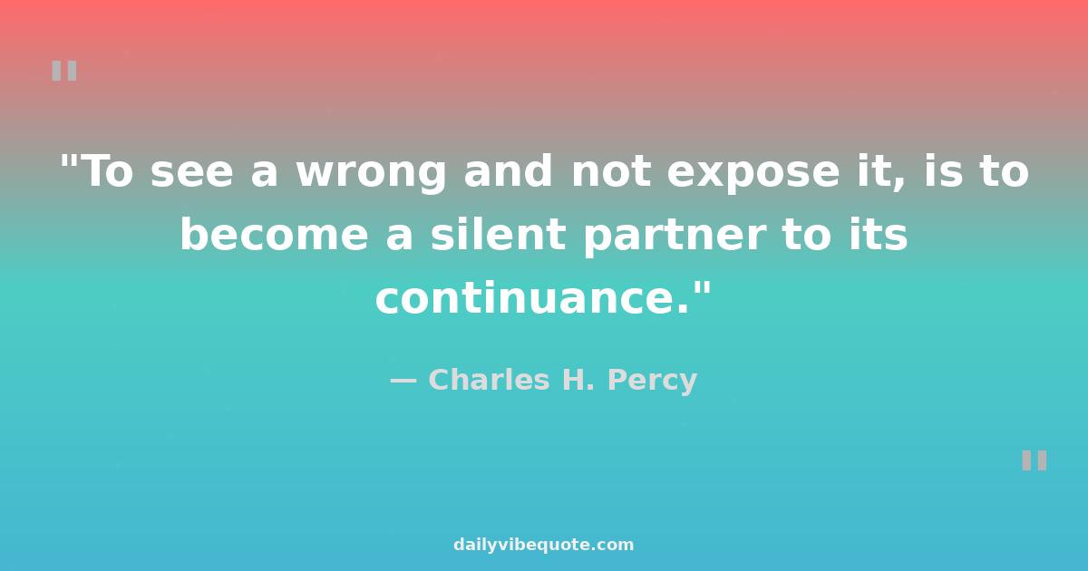"To see a wrong and not expose it, is to become a silent partner to its continuance."