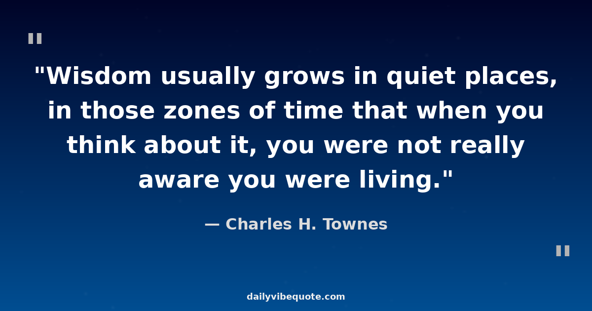 "Wisdom usually grows in quiet places, in those zones of time that when you think about it, you were not really aware you were living."
