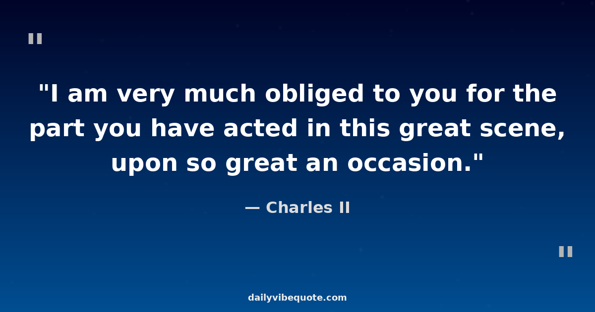 "I am very much obliged to you for the part you have acted in this great scene, upon so great an occasion."