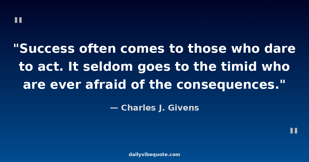 "Success often comes to those who dare to act. It seldom goes to the timid who are ever afraid of the consequences."