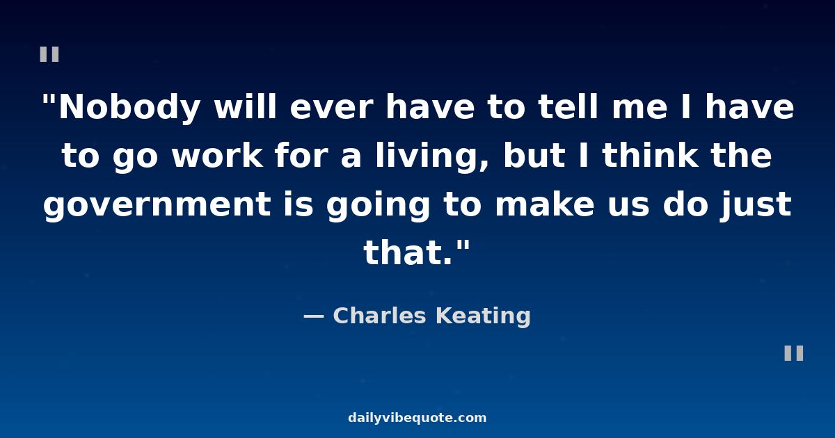 "Nobody will ever have to tell me I have to go work for a living, but I think the government is going to make us do just that."