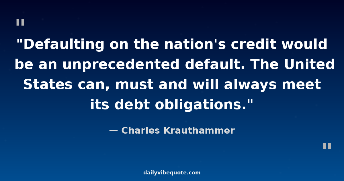 "Defaulting on the nation's credit would be an unprecedented default. The United States can, must and will always meet its debt obligations."