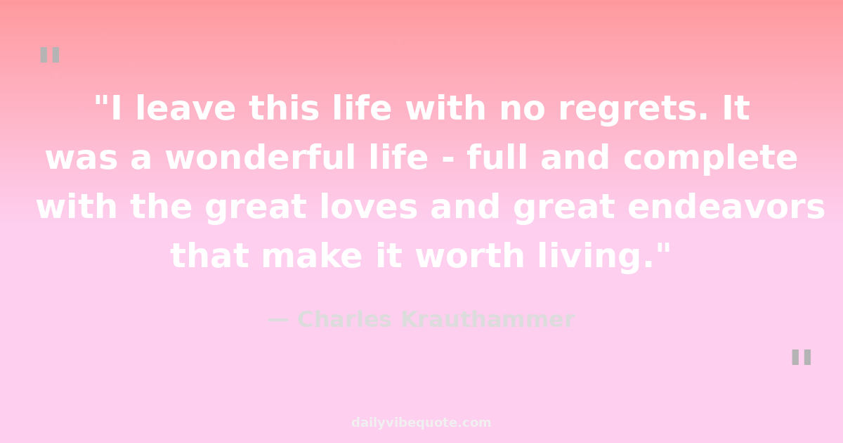 "I leave this life with no regrets. It was a wonderful life - full and complete with the great loves and great endeavors that make it worth living."