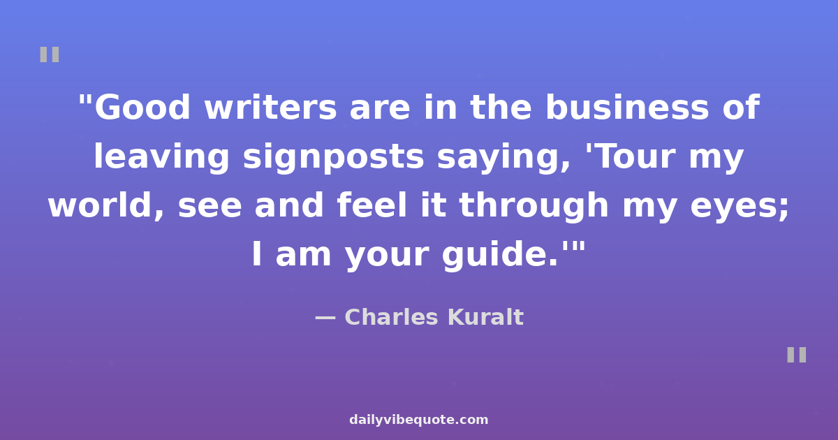 "Good writers are in the business of leaving signposts saying, 'Tour my world, see and feel it through my eyes; I am your guide.'"