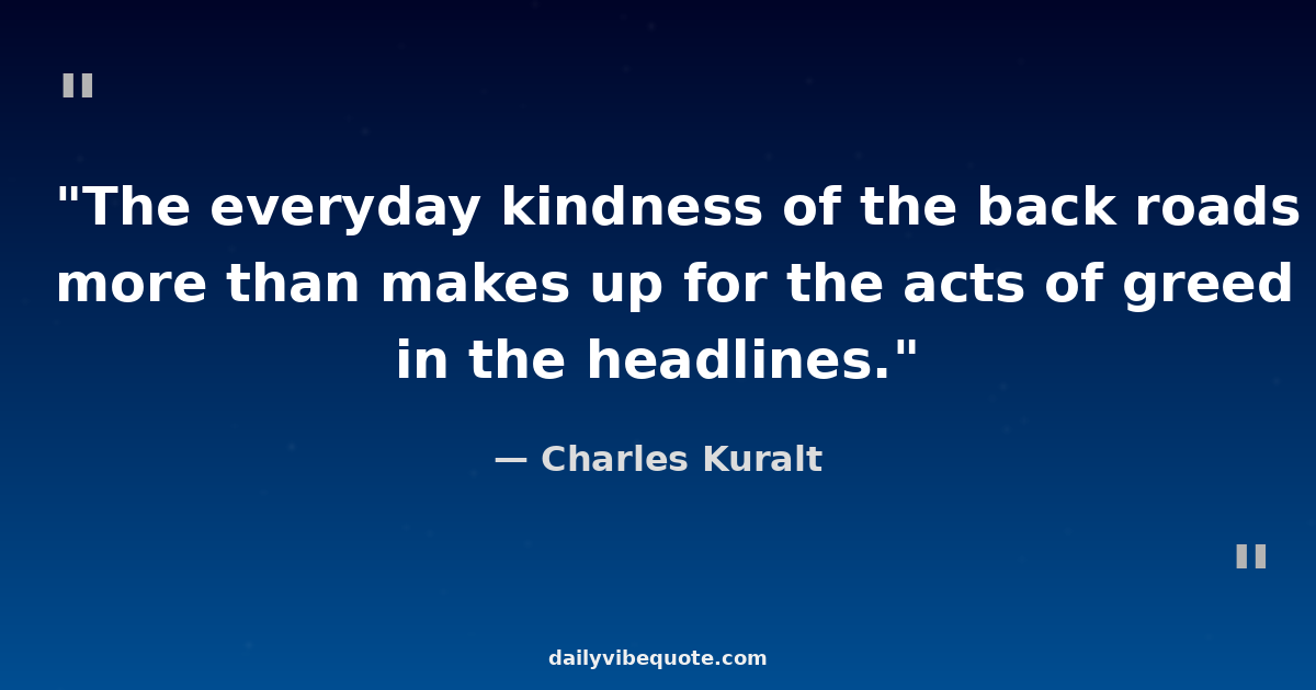 "The everyday kindness of the back roads more than makes up for the acts of greed in the headlines."