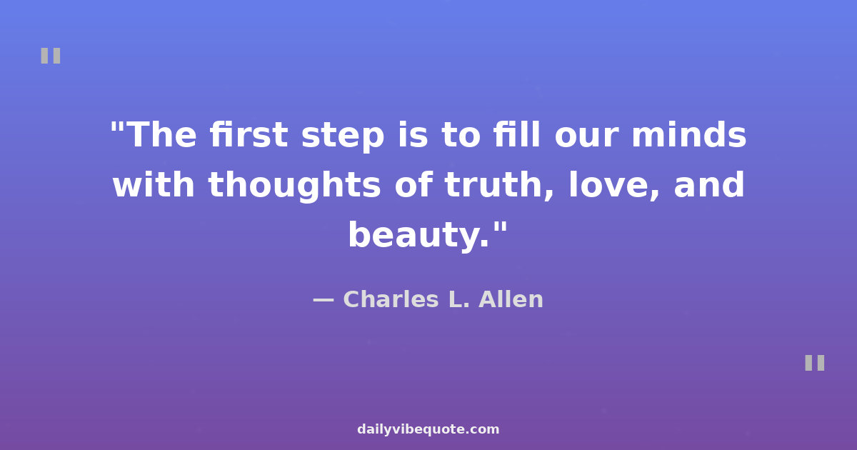 "The first step is to fill our minds with thoughts of truth, love, and beauty."