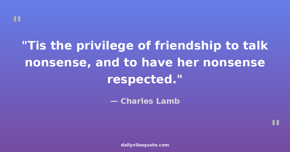 "Tis the privilege of friendship to talk nonsense, and to have her nonsense respected."
