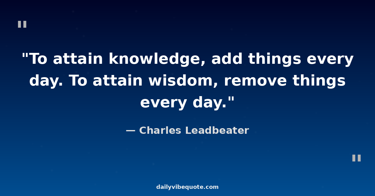 "To attain knowledge, add things every day. To attain wisdom, remove things every day."