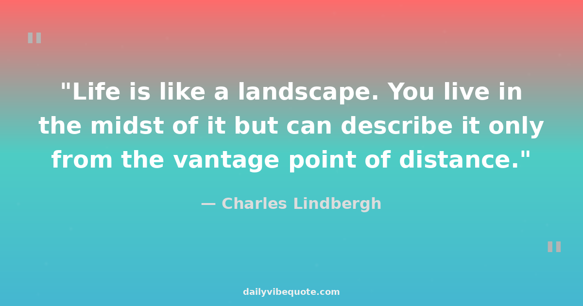 "Life is like a landscape. You live in the midst of it but can describe it only from the vantage point of distance."