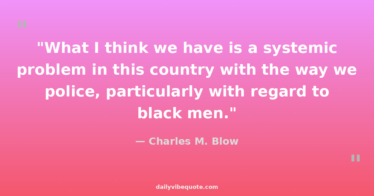 Charles M. Blow is an American journalist and commentator known for his insightful columns on social justice, racial issues, and politics. He started his career at 'The New York Times' in 1994 and has since become a prominent voice in media. Blow is the author of the critically acclaimed memoir 'Fire Shut Up in My Bones,' where he delves into his personal journey and experiences with race and identity.