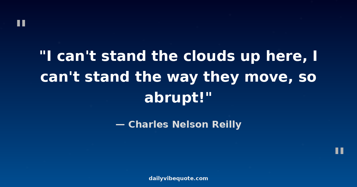 "I can't stand the clouds up here, I can't stand the way they move, so abrupt!"