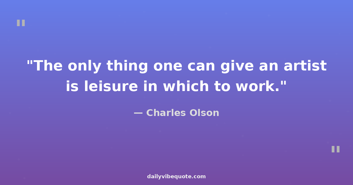 "The only thing one can give an artist is leisure in which to work."