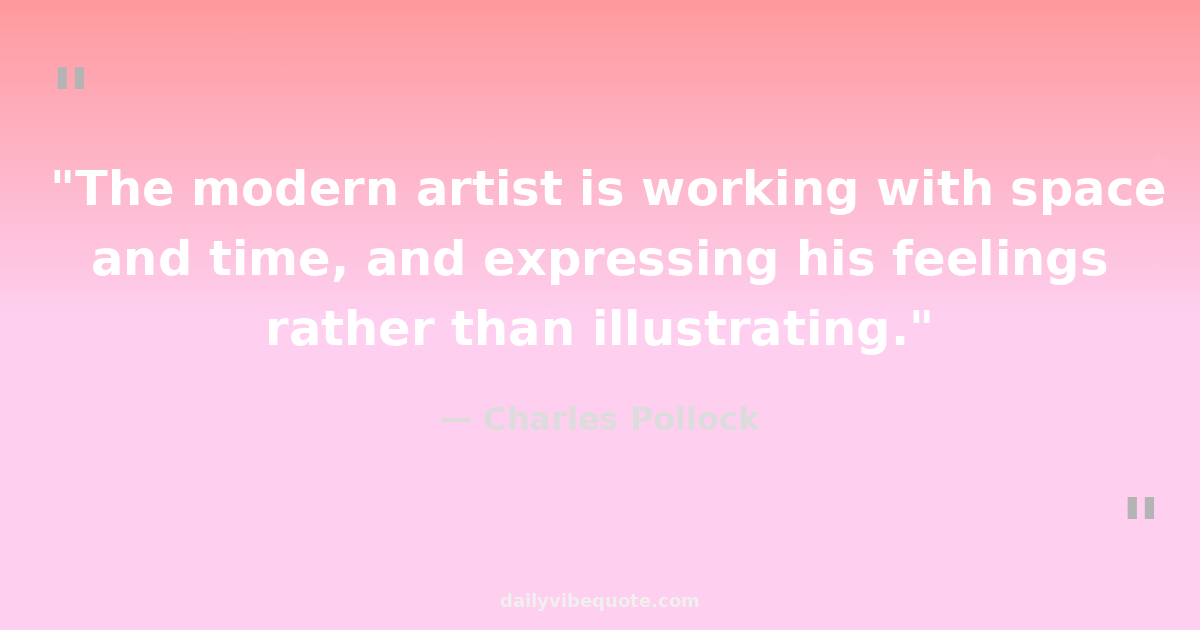 "The modern artist is working with space and time, and expressing his feelings rather than illustrating."