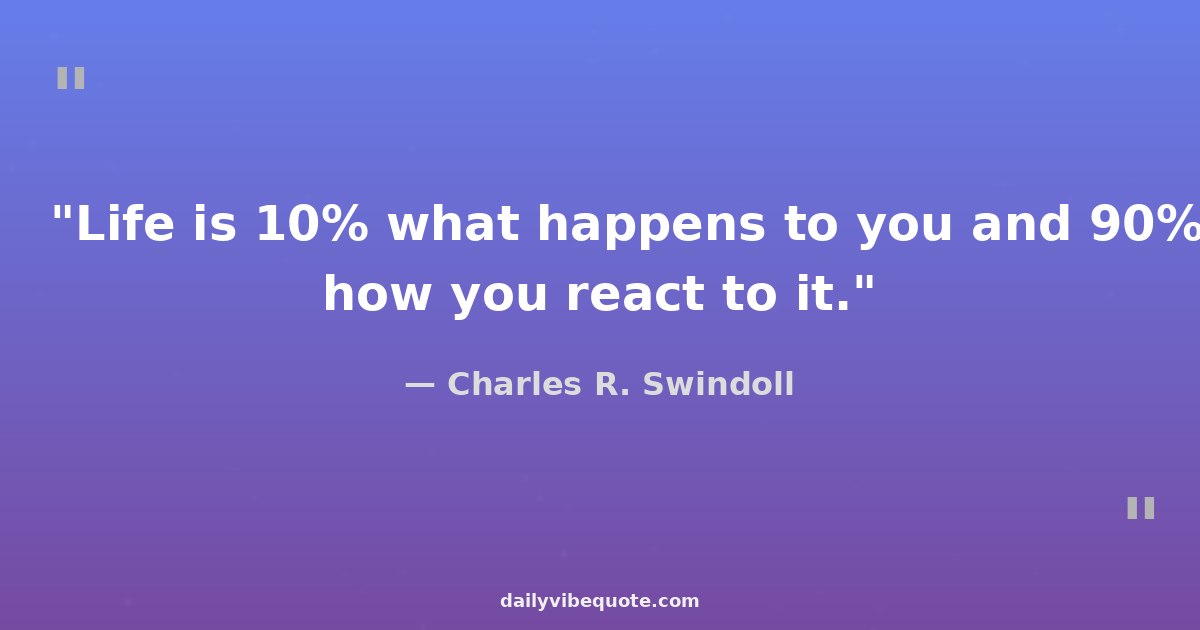 "Life is 10% what happens to us and 90% how we react to it."
