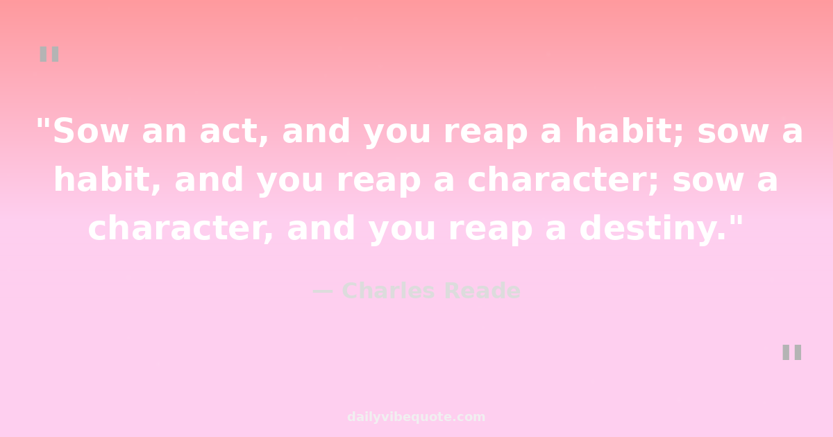 "Sow an act, and you reap a habit; sow a habit, and you reap a character; sow a character, and you reap a destiny."