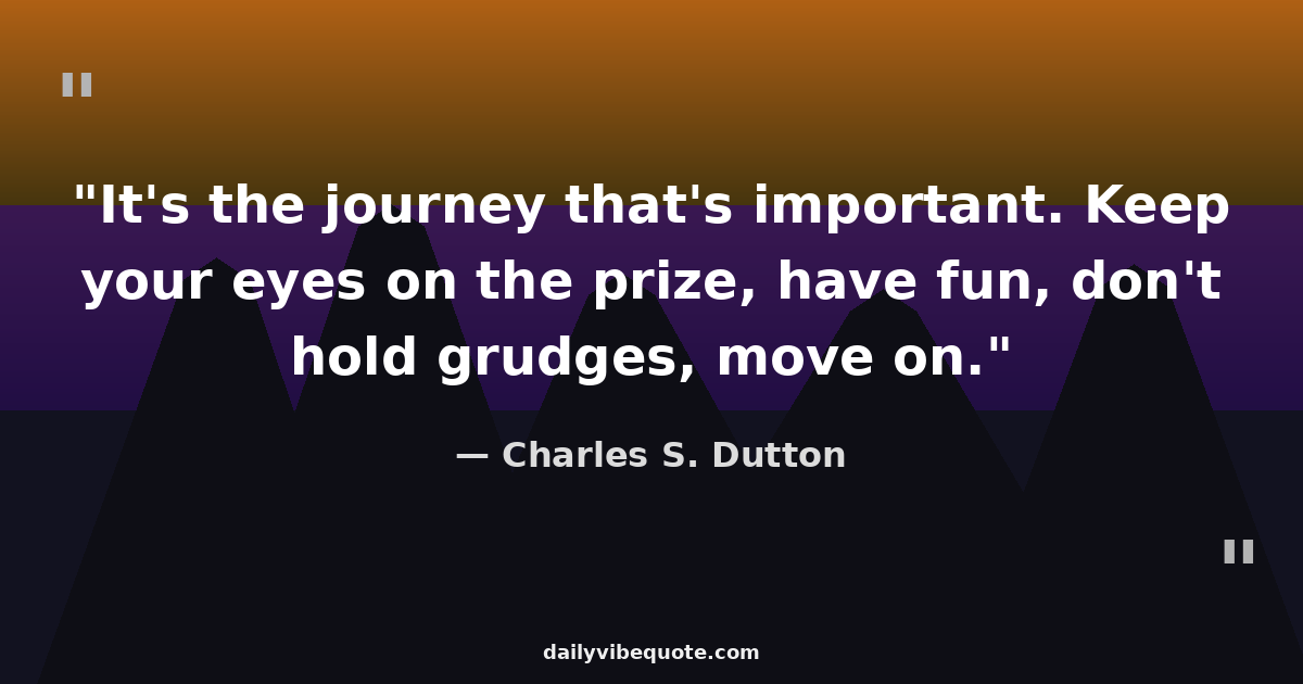 "It's the journey that's important. Keep your eyes on the prize, have fun, don't hold grudges, move on."