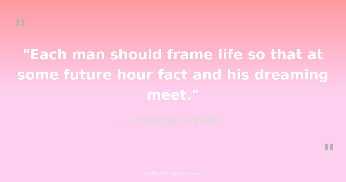 "Each man should frame life so that at some future hour fact and his dreaming meet."
