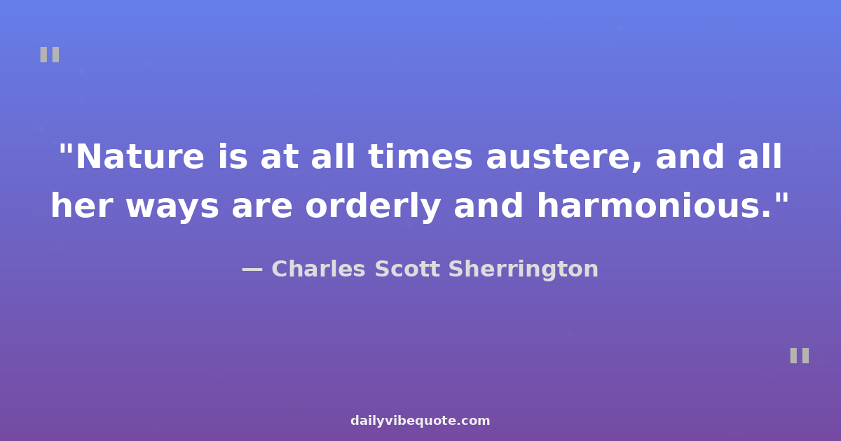 "Nature is at all times austere, and all her ways are orderly and harmonious."