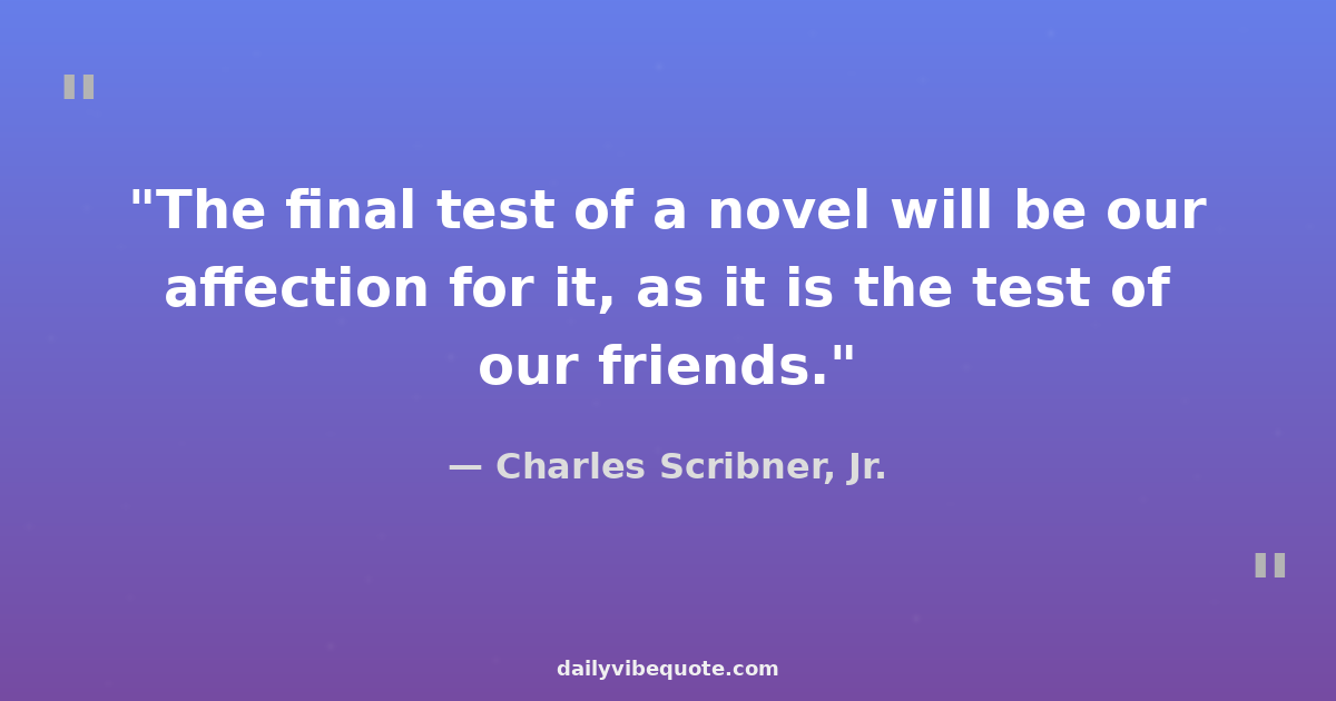 "The final test of a novel will be our affection for it, as it is the test of our friends."