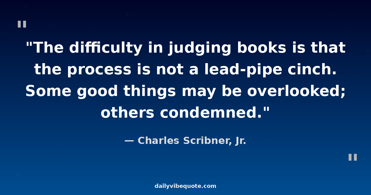"The difficulty in judging books is that the process is not a lead-pipe cinch. Some good things may be overlooked; others condemned."