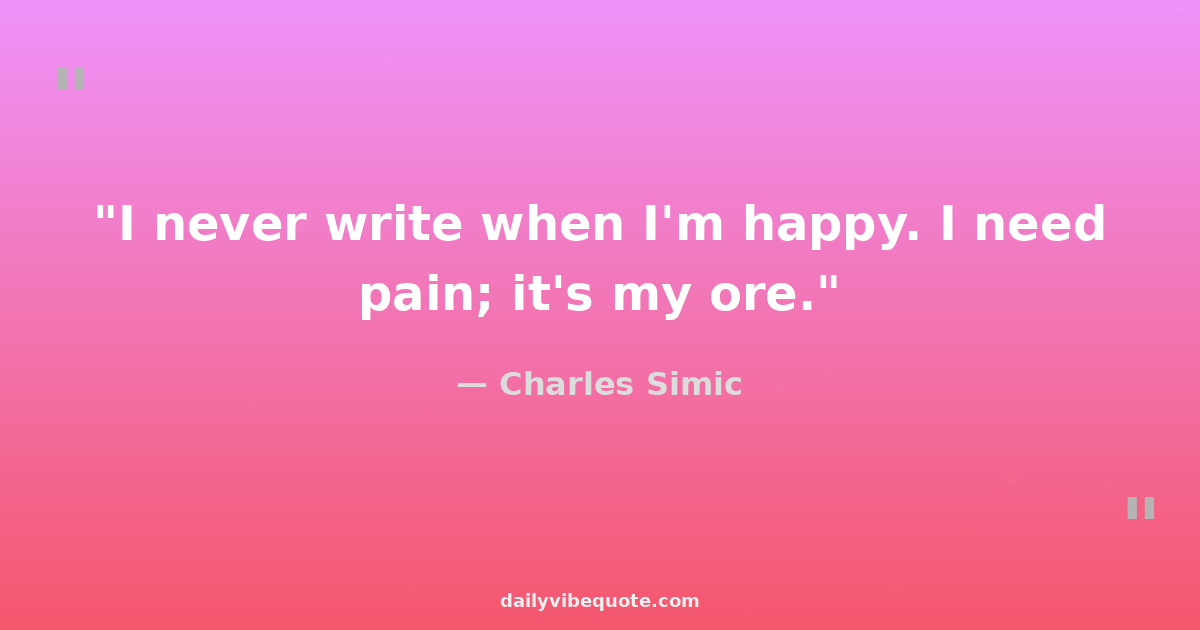 "I never write when I'm happy. I need pain; it's my ore."