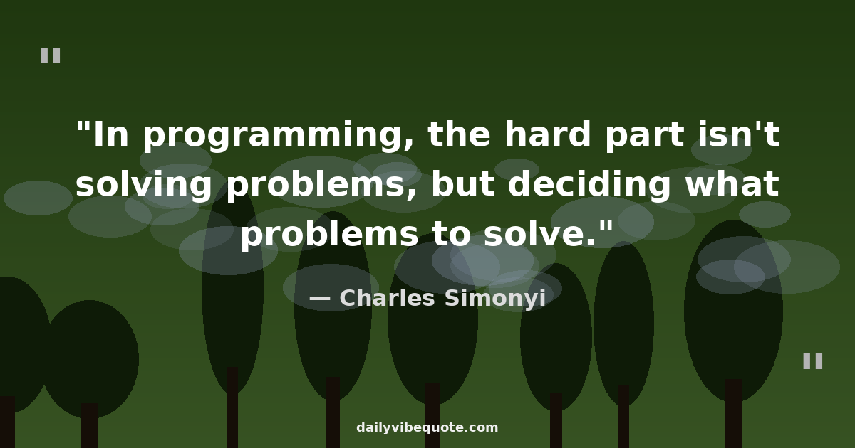"In programming, the hard part isn't solving problems, but deciding what problems to solve."