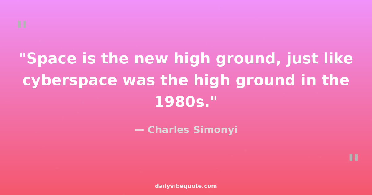 "Space is the new high ground, just like cyberspace was the high ground in the 1980s."