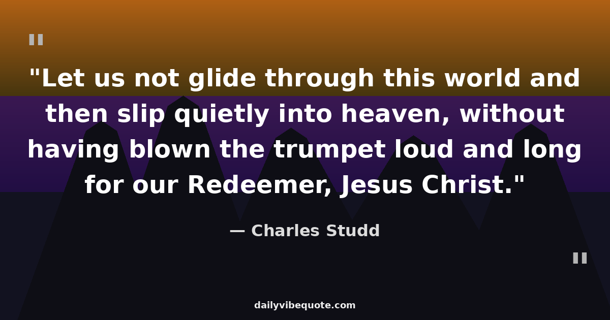 "Let us not glide through this world and then slip quietly into heaven, without having blown the trumpet loud and long for our Redeemer, Jesus Christ."