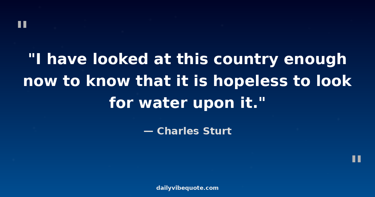 "I have looked at this country enough now to know that it is hopeless to look for water upon it."
