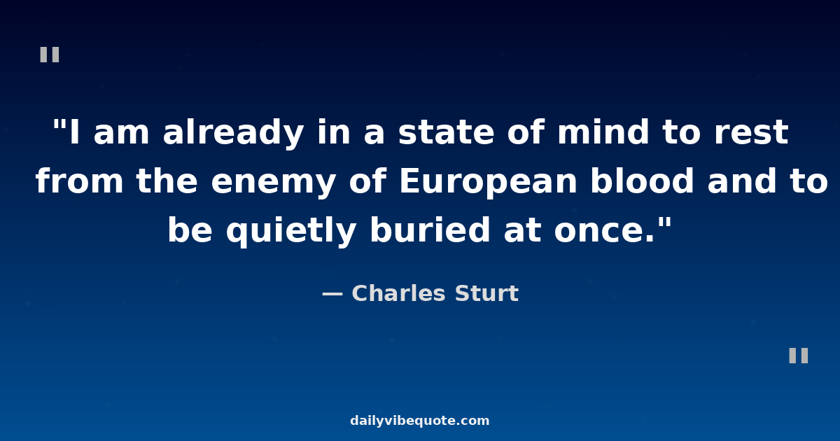 "I am already in a state of mind to rest from the enemy of European blood and to be quietly buried at once."
