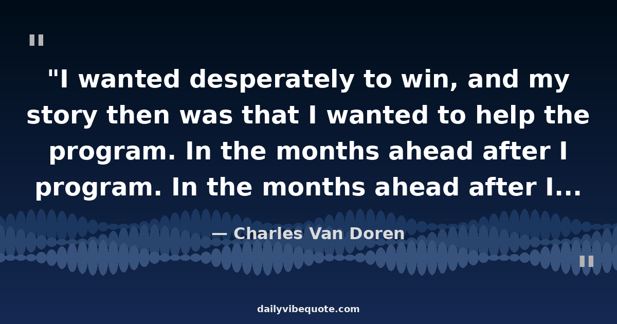 "I wanted desperately to win, and my story then was that I wanted to help the program. In the months ahead after I won, I wanted to take that money. One year after I won, I wanted to try to give it back."