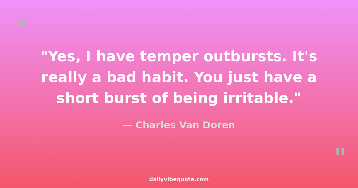 "Yes, I have temper outbursts. It's really a bad habit. You just have a short burst of being irritable."