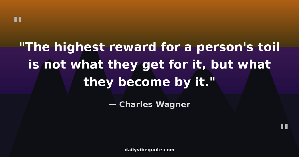 "The highest reward for a person's toil is not what they get for it, but what they become by it."