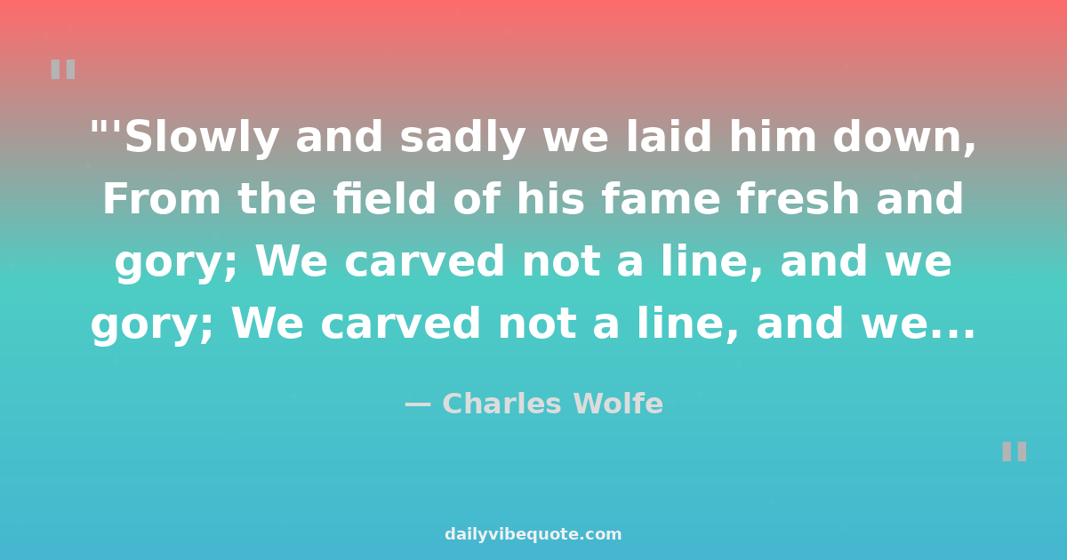 "'Slowly and sadly we laid him down, From the field of his fame fresh and gory; We carved not a line, and we raised not a stone, But we left him alone with his glory.'"