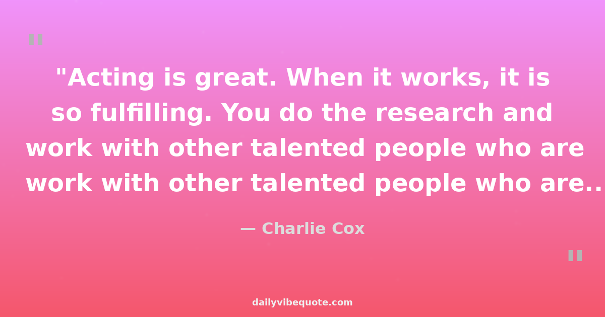 "Acting is great. When it works, it is so fulfilling. You do the research and work with other talented people who are creative and compassionate and use all your faculties."