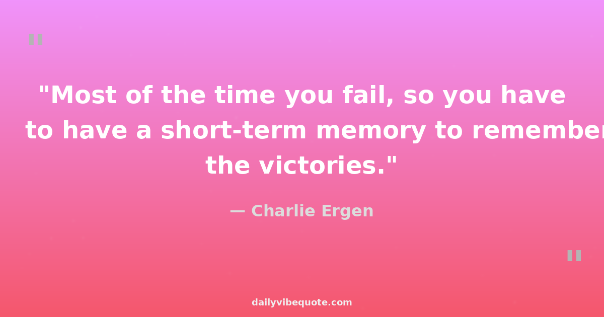 "Most of the time you fail, so you have to have a short-term memory to remember the victories."