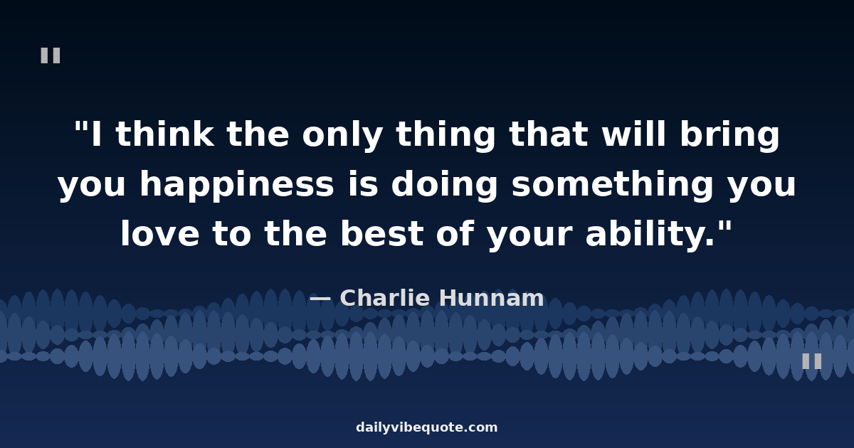 "I think the only thing that will bring you happiness is doing something you love to the best of your ability."