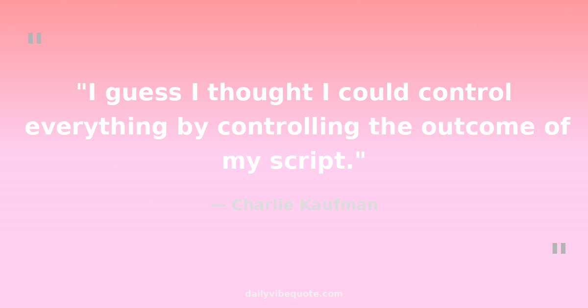 "I guess I thought I could control everything by controlling the outcome of my script."